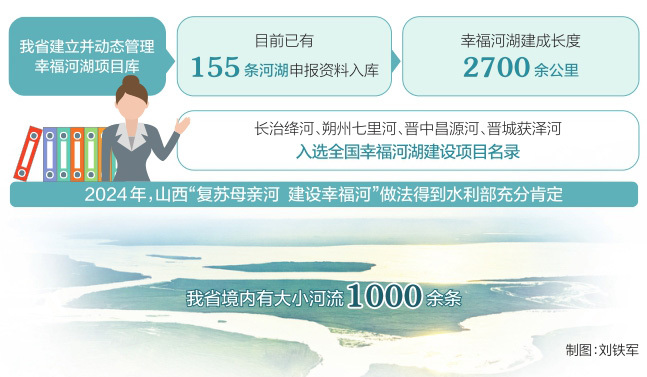 “十四五”以来,我省建立并动态管理幸福河湖项目库,构建“储备一批、建设一批、达效一批”幸福河湖项目滚动机制,对具备条件河流和湖泊,优化项目申报、评估流程。目前已有155条河湖申报资料入库,2024年建设的62条幸福河湖已完成省级综合评价,2025年建设的42条幸福河湖也进入验收阶段,幸福河湖建成长度2700余公里。长治绛河、朔州七里河和晋中昌源河、晋城获泽河4条河流,分别于2024年和2025年成功入选全国幸福河湖建设项目名录。