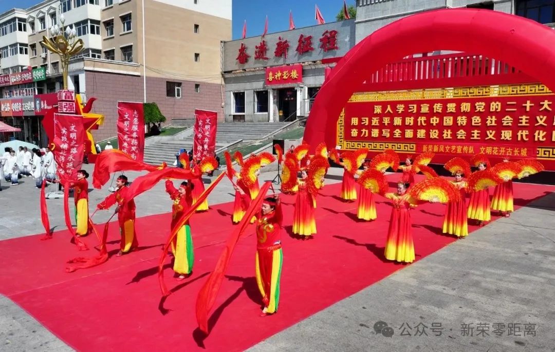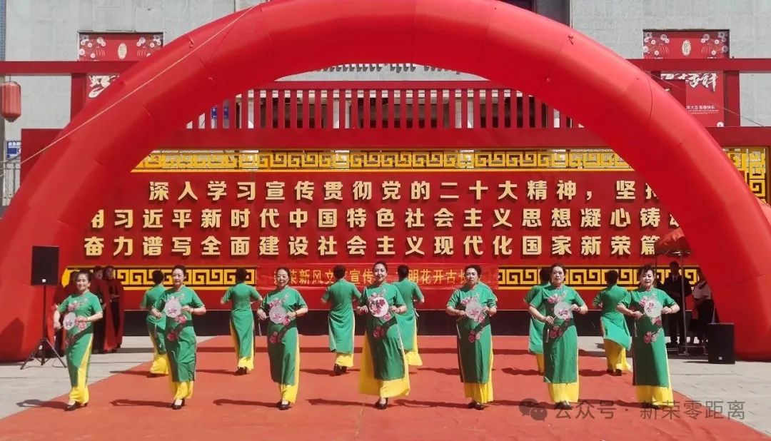 新风扑面山河秀,陋习革除日月新。6月11日上午,新荣区举行“新荣新风文艺宣传队—文明花开古长城”文艺展演在区礼堂广场拉开帷幕。本次展演以文明实践品牌项目“文明花开古长城”为主题,由新荣区委宣传部和新荣区新时代文明实践中心联合主办。旨在通过文艺形式弘扬社会主义核心价值观,宣传移风易俗理念,推动精神文明建设。