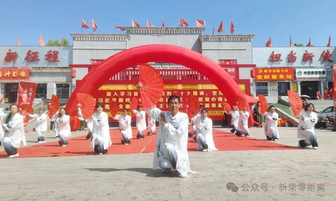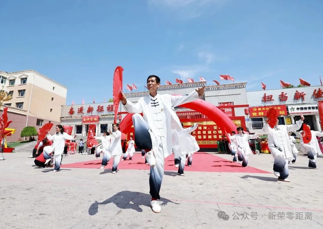 传统与现代元素的巧妙融合成为一大亮点,使文明新风沁入人心。郭丽芳的《超越梦想》以嘹亮歌声激励观众追逐理想;传统武术太极队的《二十二式杨式太极拳》刚柔并济、行云流水,彰显中华武术的博大精深。中老年旗袍协会的舞蹈《鲜花与祝福》以旗袍与鲜花的优雅组合,传递了对生活的礼赞。冀成有带来的《打碗音乐》以碗筷为乐器,叮咚作响,妙趣横生,让观众耳目一新。而快板《婚嫁新风满新荣》则以节奏明快的说唱形式,倡导文明婚俗新风,赢得阵阵喝彩。