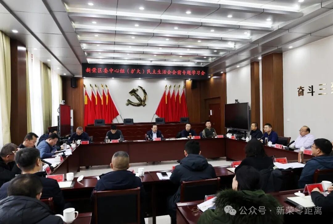 2月9日,新荣区委理论学习中心组(扩大)2025年度民主生活会专题学习会在区工人文化宫会议室召开,会议深入学习贯彻习近平新时代中国特色社会主义思想和党的二十届四中全会精神,学习领会习近平总书记在中央政治局民主生活会上的重要讲话精神,围绕党中央确定的2025年度民主生活会主题进行研讨交流,进一步深化思想、凝聚共识,为区委常委班子高质量开好民主生活会打牢思想基础。